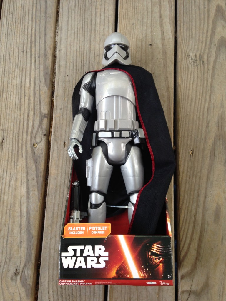 I wanted that 50″ talking Storm Trooper so badly, but I feared for my marriage. So it stayed on the shelf. I didn’t see anyone else buy it either, but everyone loved it. Because of limited quantities and fairness and all of that good crap, they placed a limit of three on any item line number. That, which I found out, did not mean any one particular item but instead any line. So I was only able to pick up three of the five new 6″ Star Wars Black figures. Boo! I did, however, find my 20″ Captain Phasma. I only wish they had done her in vac metal instead of that swirly grey plastic.