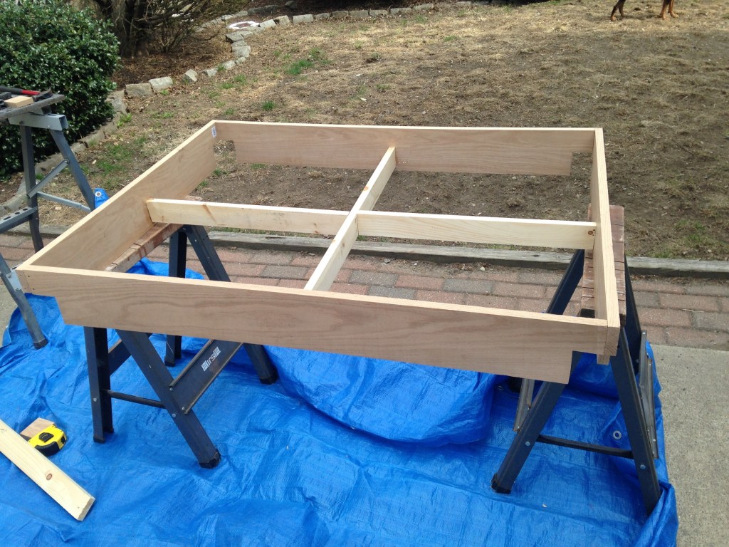 I was pretty unhappy with the way the first frame came together. the sides were bowed in and in general it just wasn’t how I wanted it. So I took it apart and started over. This time following the plan dimensions a bit more closely. Since I don’t have a table saw, planer, or various other shop tools I had to make a few substitutions.